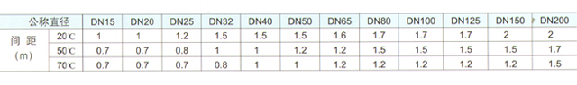 華爾樂 ABS塑膠管道系列產品與其他管道一樣,在管道設計時必須考慮管夾支托間距。有關各種規格的管子,在管內充滿液體的情況下支托間距請查考下表: