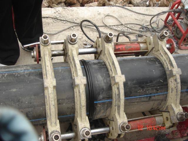 值得注意的是,加熱板的溫度都由焊機自動控制在預先設定的范圍內。但如果控制設施失控,加熱板溫度過高,會造成溶化端面的PE材料失去活性,相互間不能熔合。良好焊接的4 ″管子焊縫能承受十幾磅大錘的數次沖擊而不破裂,而加熱過度的焊縫一拗即斷。